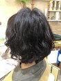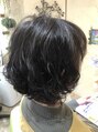 ネックラインのグラボブに、毛先1回転半の低音デジタルパーマをかけたスタイル。