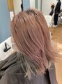 毛先は何度もブリーチの履歴があり、前回はインナーにブルーが入ってました。リタッチでブリーチをして、ワンカラーに^^深めのラベンダーpinkです!