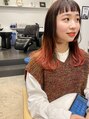 眉上のワイドバンクに顔周りは短くレイヤー気味のマッシュ。カラーは毛先グラデーションのピンクオレンジカラー!!艶のあるカラーとお洒落さを組み合わせたカラーです。アレンジで結んだりするだけでお洒落に仕上がります!!
