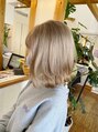 ブリーチは1回~2回必要です!ハイトーンのミルクティーベージュで透明感のある仕上がりにしてます!カットはボブベースに少し軽さを出して動きのある感じに!ブリーチ回数や色味などは当日ご相談下さい!ご来店お待ちしてます♪