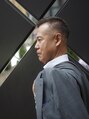 右サイドからはトップで剃り迄刈り上げ。左サイドからはフェードでハチまであげてトップ角を残して。前から見ては斜めのベリーショート、潔く野性味の溢れるスタイルは男の仕事着に嫌味のない新鮮さを演出。カラーは赤味を抑えたヨーロピアンブラウン。