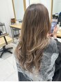 たっぷりのレイヤーカットで巻いて動きが出るスタイル!繰り返しのハイライトでダメージレスに透明感を!流れやすい顔周りを作って簡単にスタイリング出来ます^^