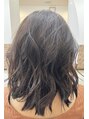 ミディアムボブベースからレイヤーカットでゆる巻きスタイリングしやすく。7トーンのグレージュブラウンで赤みを抑えた仕上がりに。カラー同時施術のアメージングトリートメントを重ねてツヤのある柔らかな手触りに。