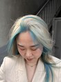 ホワイトベージュにブルーのフェイスフレーミング。ダントツに可愛い組み合わせです!丁寧にブリーチ、デザインしていくので安心してお任せください。