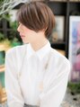 【スタイルは★ブックマーク★が便利】似合わせカットで小顔効果が期待できる大人かわいいリラックス感ある大人ボブ。前下がりの斜めバングでショートに抵抗のあった方もチャレンジし易いショートボブ。オレンジベージュ系やイエローアッシュ系で優しい雰囲気