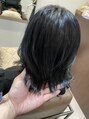 切りっぱなし前下がりボブ!毛先は外ハネにして全体はゆるく動きが出る程度にまいてあります!カラーはブルーブラック!!