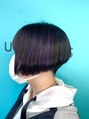 前髪とサイドにインナーカラーを入れました!派手にならないくらいの、ムラサキでオシャレ感をプラス(^^)カットは、えりあし刈り上げてスッキリ、ハンサムに!丸みを出して女らしさも忘れずにだしました(^^)
