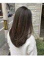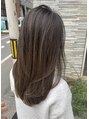 細かくブリーチハイライトを入れて白髪をぼかし透明感をアップしています。32ミリのコテでワンカールドライスプレーでナチュラル仕上げ