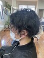 周りをスッキリ刈り上げ、長めのトップに緩めのパーマで動きを出しました