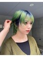 ブルーとネオングリーンのデザインカラー/ホットペッパービューティー