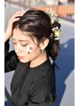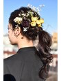 ドライフラワーが飾れるように、きっちりかつ女の子感も出せるような編みおろしスタイル。カラーはピンクラベンダーを入れて大人な雰囲気に。
