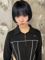 流行りのパッツンショートボブ。ブリーチして、青にしました。表面から黒をちらつかせています。美しいラインにこだわりました。