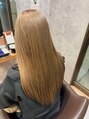 明るめなオレンジベージュカラーに、全体にたっぷりなレイヤーを入れてカールを入れて仕上げました。