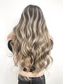 地毛はワンカラーでグラデーションを作り根本は暗め。ブロンドのハイトーンのシールエクステの毛束を付けて、ハイライトバレイヤージュ風に仕上げてます。