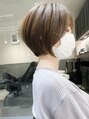【斉藤がカットしていますのでこの髪型になりたい方はご指名ください】顔周りの髪を長めに残し小顔に見える前髪カット、頭の形を綺麗に見せるようにカットしたショートヘア。手グシで簡単にまとまるショートヘア。カラーはグレージュでこなれ感と柔らかさを☆