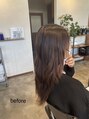 ロングからばっさりカット!毛先中心にパーマをかけたのでスタイリングが楽になります。カラーはイルミナカラーでアッシュベージュ系にしました。
