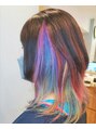 アンブレラのデザインカラー1ブリーチでしっかり明るくさせていただいた後にカラートリートメントでデザインさせていただきました。カラー剤は使用してないので、アレルギーの方でも可能です