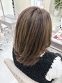 ベースをピンクベージュにし、イヤリングカラーをシナモンベージュで染めました。ブリーチが必要なカラーになります。
