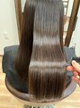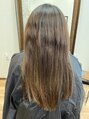 ノンジアミンカラーでダメージを抑えながらまろやかなベージュに。根元はブラウンで白髪を染めていきました。前上がりにカットして表面の角を削っているので収まりやすいロングスタイルです。