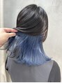 11301艶髪ネイビーブルーブルーインナーカラーアッシュブラック
