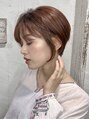 根本からフォワードに全体をドライし、ストレートアイロンで毛先を自然なワンカールで巻き、顔まわりが重たくならないようにサイドは耳にか毛手軽さをだしました。スタイリングはミルクを全体にもみこんでな仕上がりにしました。