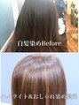 一番気になる白髪染めの境目をファッションカラーで染めきらなずにボカし、毛先に馴染むようにハイライトを。濃い白髪染めを繰り返している場合などは回数を重ねて作る必要もあるので、しっかりとご相談して最適なカラーとの付き合い方をご提案致します。