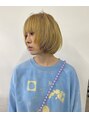 ハイトーンのマッシュボブ根元はベージュで中間、毛先はイエローで鮮やかに