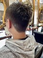 耳周りと襟足をソフトに刈り上げてスッキリさせた正統派のショートです。ハサミでソフトに刈り上げを作ることで伸びてきたときのヘアの持ちが違います。全体的に柔らかさのあるショートなので、強面に見られたくないかたにオススメです。