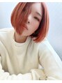 ブリーチなし。カットは顎ラインのワンレンボブ。カラーはバレンシアオレンジ。