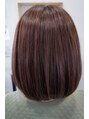 カットはワンレンボブ。ナチュラルで上品な印象のスタイルです。色味は柔らかい雰囲気の明るめベージュカラーに。