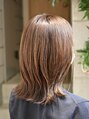メリハリを弱めてナチュラルなくびれのミディアムスタイル。
