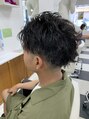 サイドからネープにかけてツーブロック全体に流行のソフトツイストで動きをプラスしたスタイル。スタイリングが楽なのに決まるスタイルです。