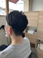 骨格を見極めて刈り上げるポイントや全体の長さを決め、スタイリングを簡単にし、カッコ良く仕上げます。サイドは2ミリ~6ミリのグラデーションで刈り上げ。バックは3ミリからトップにつなげるようにカット。