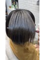 膨張する癖に対してアルカリストレート(一般的な縮毛矯正)は硬さや直毛になりすぎたりなど質感劣化のリスクが上がりますこういったケースこそ酸性ストレートは劣化リスク最小限で髪質改善まで行うsins式髪質改善酸性ストレートは潤う柔らかい髪質となります