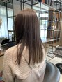 毛先に軽さを出したストレートロング。ブリーチ無しのアッシュで透明感ある色に^ ^