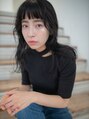 前髪はパッツンにカットし、全体的な長さは肩甲骨下くらいのロングなスタイルでメリハリを出しています。カラーはかなり暗めのブラウン系のカラーリングでより落ち着いた雰囲気に。スタイリングは毛先をゆるく巻き無造作感を出しています。【船橋駅】