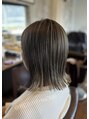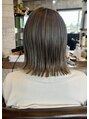【カラー】人気のグレーベージュ♪灰色味を残しつつベージュで透明感のあるカラーにしました!【スタイル】@切りっぱなしボブ@軽めにスタイルを作り外はねしやすく、アイロンも楽になるスタイルで◎♪ベース