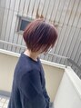 ピンクブラウン丸み前髪なし大人前下がりショート【BLAZE 大庭】