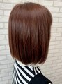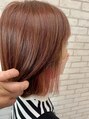 肩の上で 乾かすだけでもスッキリまとまる やや前下がりラインのシンプルなボブのスタイルです。明るめのピンクカラーは髪色にツヤが出るのと 肌の色を綺麗に見せる効果もあり なんといっても可愛いです!既存のイヤリングカラーには色をたすことで楽しめます