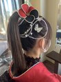 お着物もシンプルでクールなものだったので、スタイルもカッコ良さを出しつつ、金箔や水引を使って華やかさを出しました(^ー^)蝶の飾りも目立って良いバランスに仕上がったと思います!