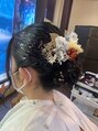 黒髪のシニヨンスタイルだったので、大人っぽさを出してふわふわ過ぎないように、まとめました(^ー^)金箔とお飾りがさらに大人っぽさを引き出してくれました