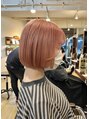 レッドカラー/暖色カラー/ケアブリーチ/ボブ/切りっぱなしボブ