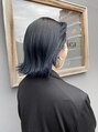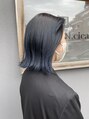 切りっぱなしに透明感ブルーブラックで個性を出したお洒落なスタイルに♪軽くアイロンを通して、オイルをつけただけのご自宅でも出来る簡単スタイリングが可能です!!