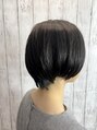 黒髪ショート。重くなりすぎないように、量感を調節して、襟足のクセもおさまりやすいようにしています。