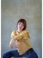 顔まわりにデザインカラーの入ったマッシュボブ。