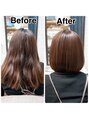 アルカリカラーでのダメージやゴワつき。傷んでパサパサの髪に酸性ストレートとカラー。栄養と水分が流出していまっている状態なので、色も抜けやすく、傷みやすい。sins酸性ストレートの薬剤は髪質改善となる成分配合。矯正時に髪質もよくなり長持ちする。