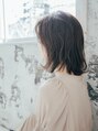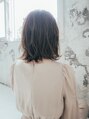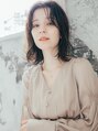ミディアムスタイルです。毛先を少し軽めにカットすることで動きの出やすいスタイルになってます。カラーは透明感のでるように暗すぎないカラーになっているので全体的に大人っぽい印象になります。ふわっと動きが出るように26mmでまいてます。