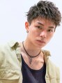 ツイストスパイラルパーマでニュアンス感ある動きをつけてナチュラルセクシーなモテ髪型に。ツーブロック刈り上げのくせ毛風耳だしショートが爽やか。ダークカラーでツヤ感プラス。ドライ後、ムースやワックスをつけるだけの簡単1分スタイリングがうれしい。