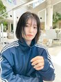 ファッションがシンプルなトラックジャケットを使いそれに合うようにヘアもシンプルな内巻きのスタイル。ですが抜け感のある雰囲気も作りました。#ボブ#ミディアムボブ#暗髪ボブ