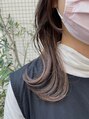 全体は暗めのグレージュにインナーはハイライトでちらちらポイントになるようにブリーチで抜いて、ミルクティーピンクをON♪